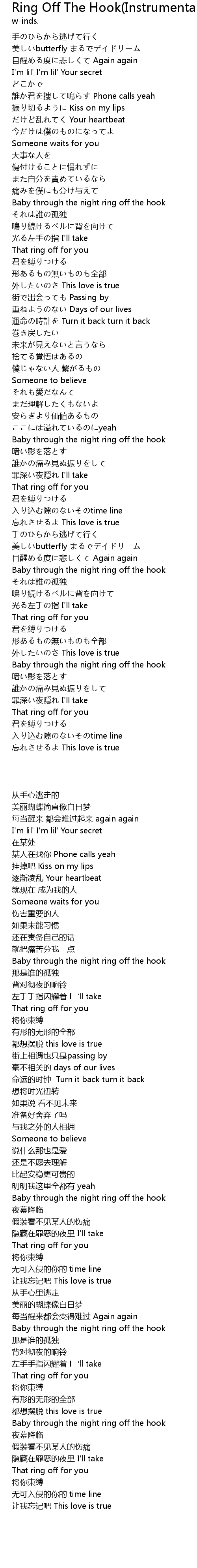 | [00:36] | 誰か君を捜して鳴らす Phone calls yeah |