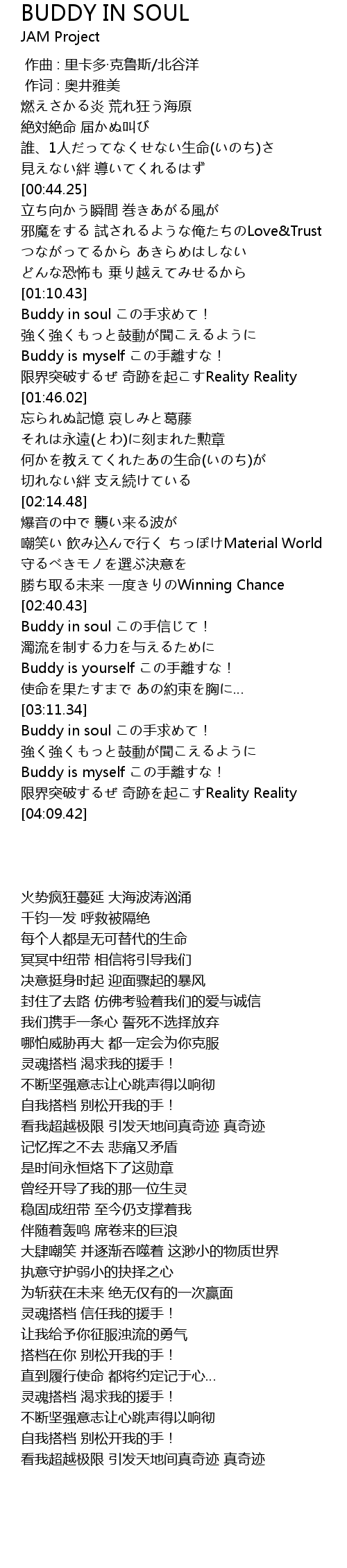 | [02:42.05] | Buddy in soul この手信じて! |