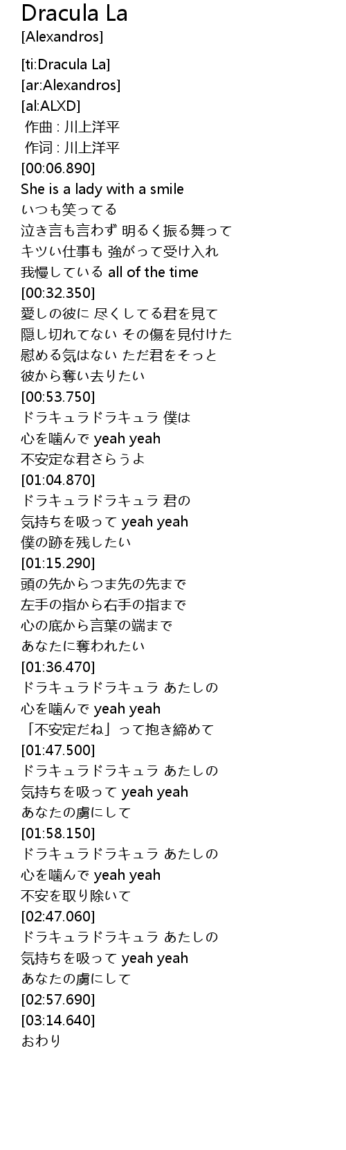| [02:36.970] | ドラキュラドラキュラ あたしの |