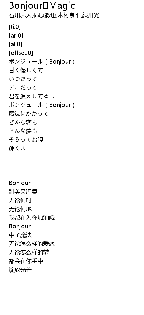 Bonjour Magic Lyrics