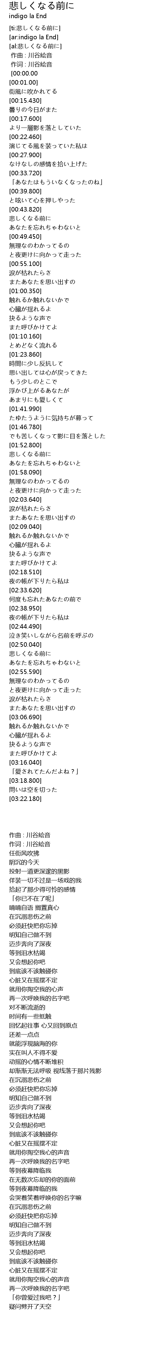 | [00:44.860] | 悲しくなる前に |