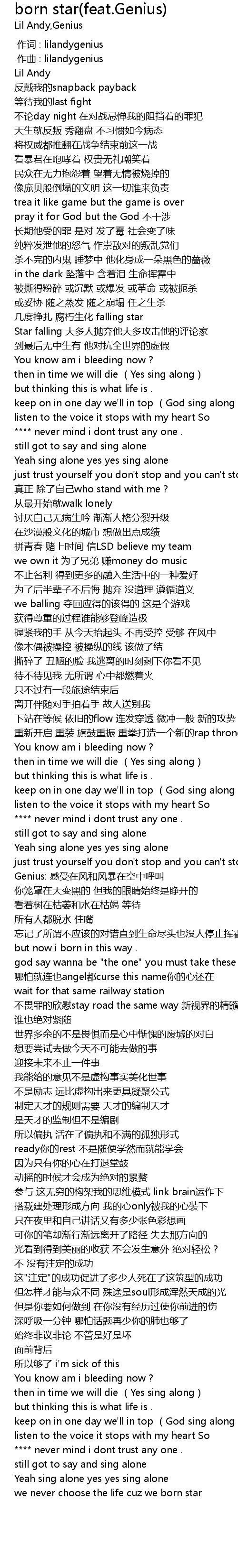 | [01:11.43] | Star falling 大多人抛弃他大多攻击他的评论家 |