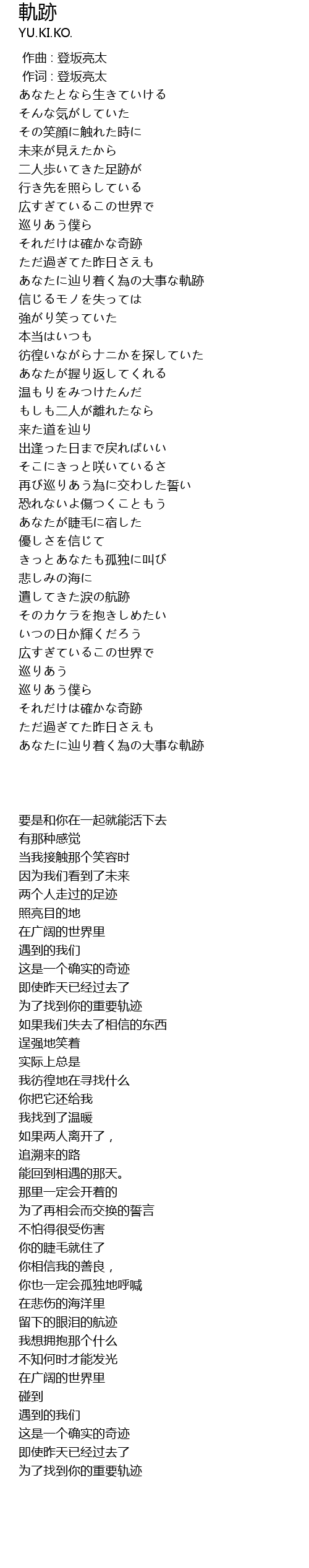 | [04:14.20] | あなたに辿り着く為の大事な軌跡 |