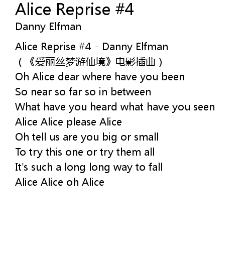 | [00:00.100] | Alice Reprise 4 Danny Elfman |