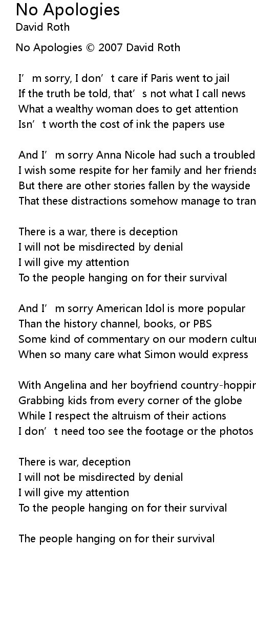 | No Apologies © 2007 David Roth | |