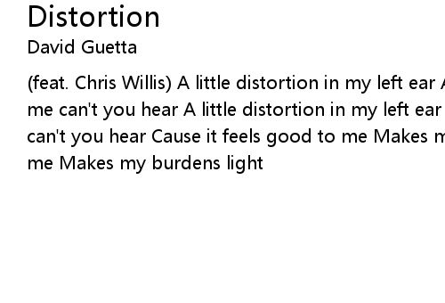 | (feat. Chris Willis) A little distortion in my left ear A little distortion tell me can't you hear A little distortion in my left ear A little distortion tell me can't you hear Cause it feels good to me Makes me feel allright It feels good to me Makes my burdens light |