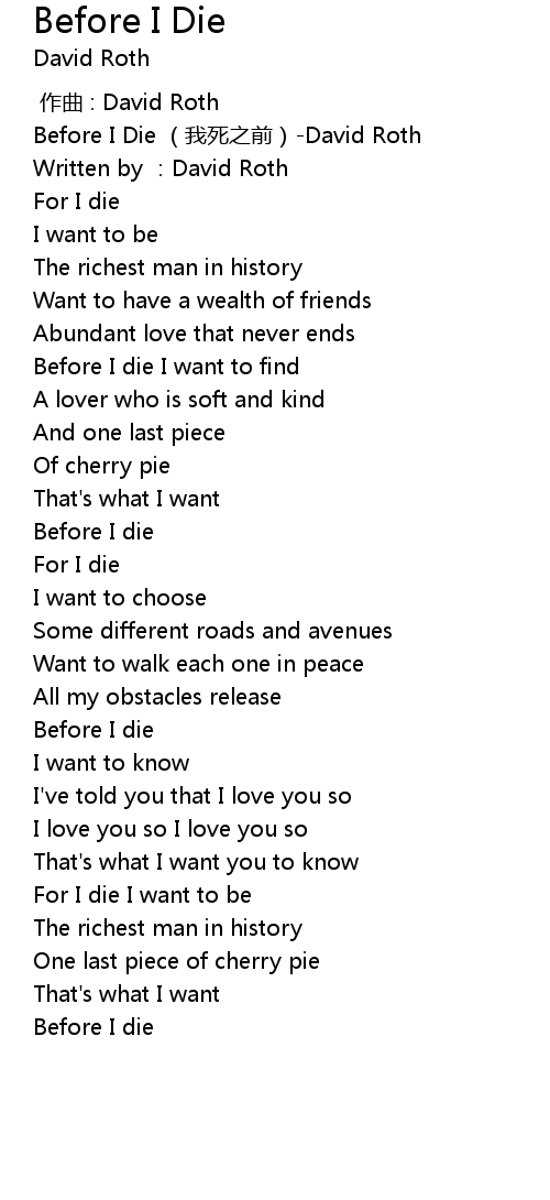 | [00:00.00] | Before I Die wo si zhi qian David Roth |