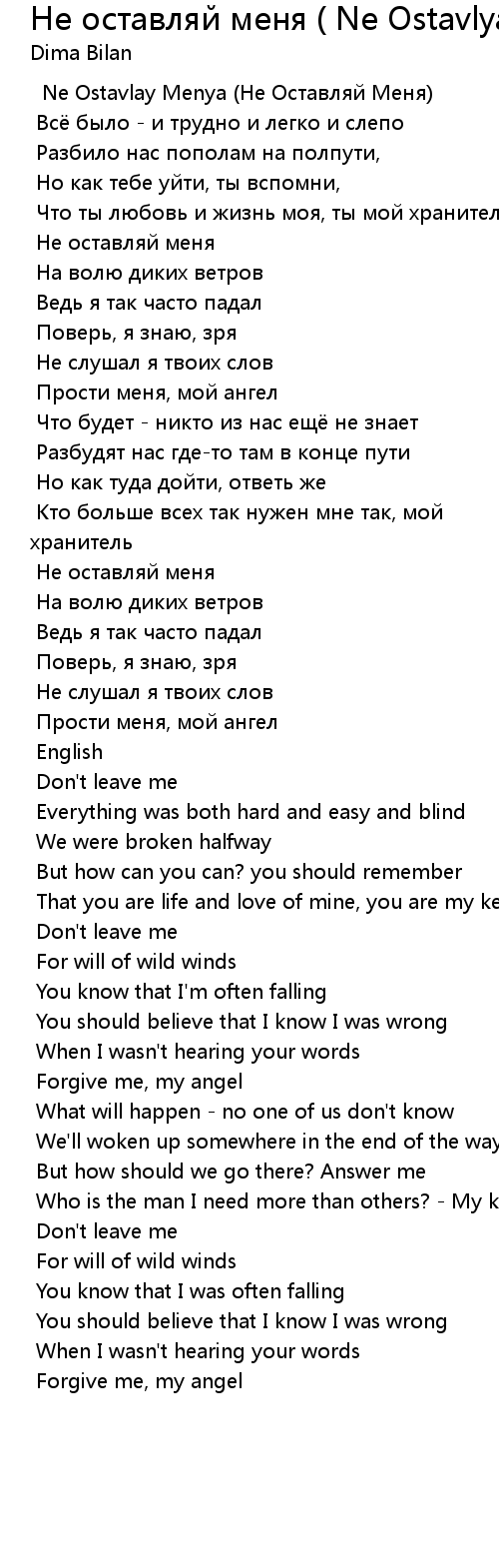 | Song | Не оставляй меня ( Ne Ostavlyay Menya ) |