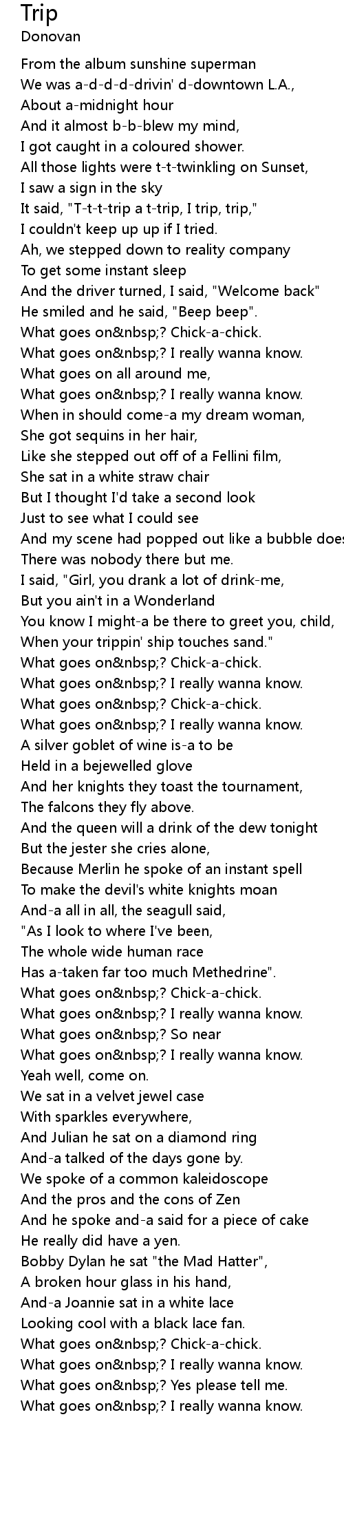 It said, "T-t-t-trip a t-trip, I trip, trip," |