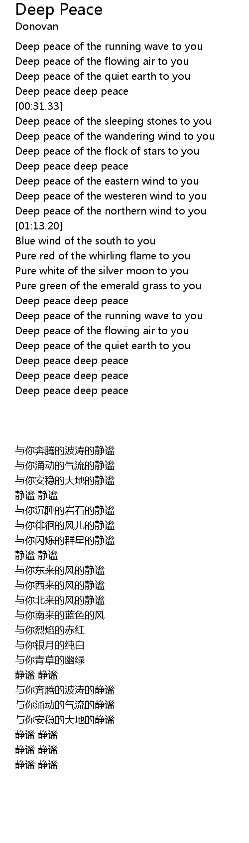 | [00:38.33] | Deep peace of the wandering wind to you |