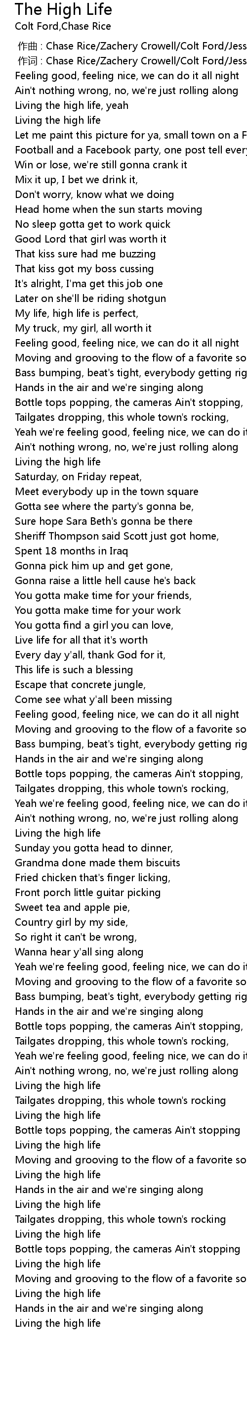 | [00:01.00] | zuò cí : Chase Rice Zachery Crowell Colt Ford Jesse Rice Chris Cline |