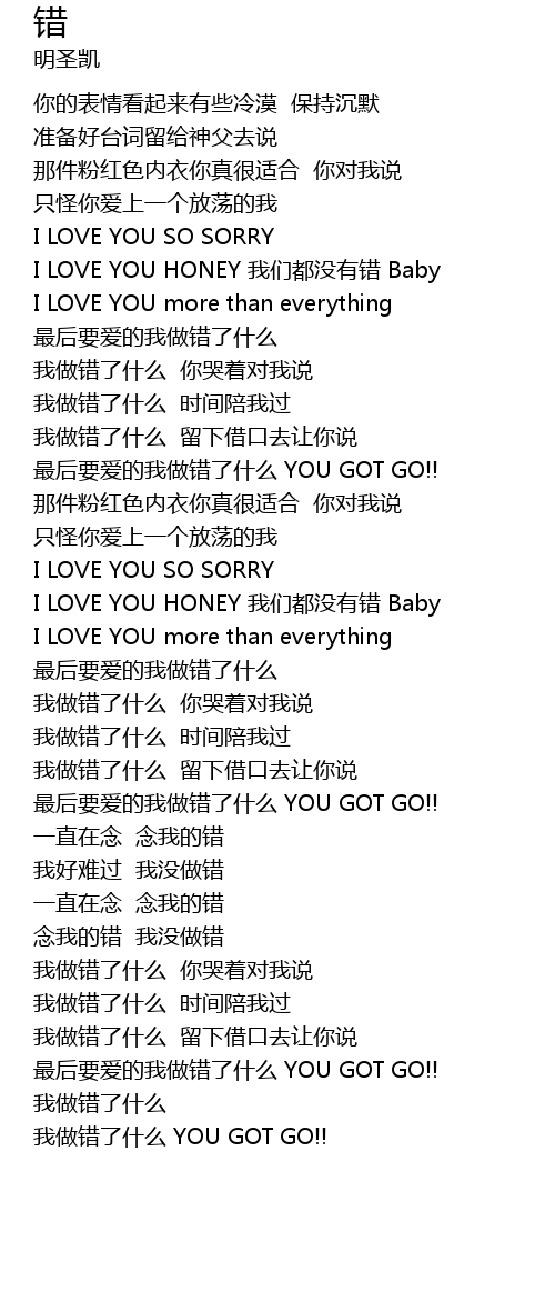 错 cuo Lyrics