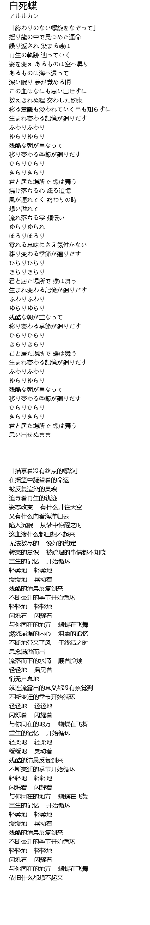 | [03:44.77] | 君と居た場所で 蝶は舞う |