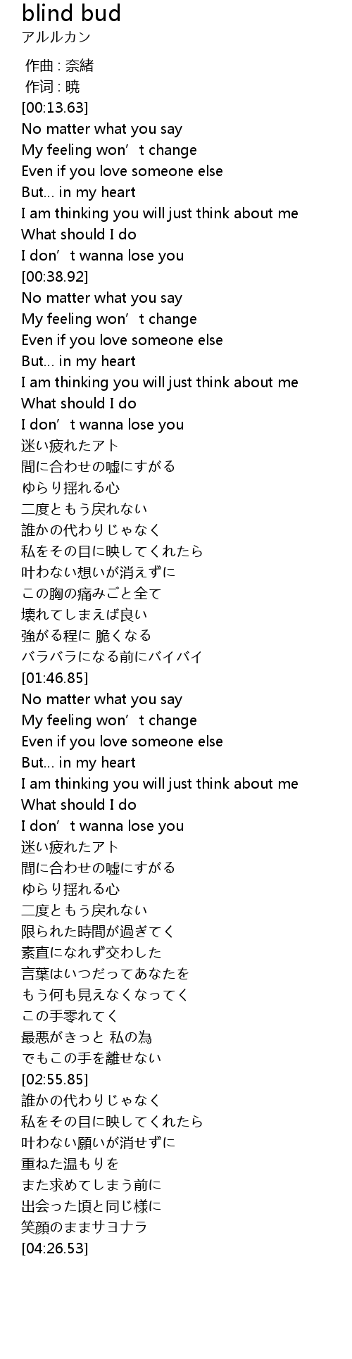 | [00:51.89] | My feeling won’t change |