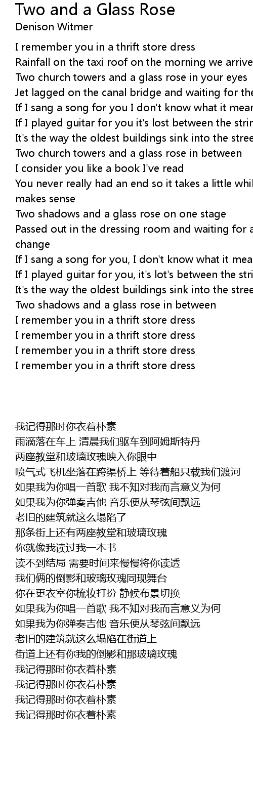 Two church towers and a glass rose in your eyes |