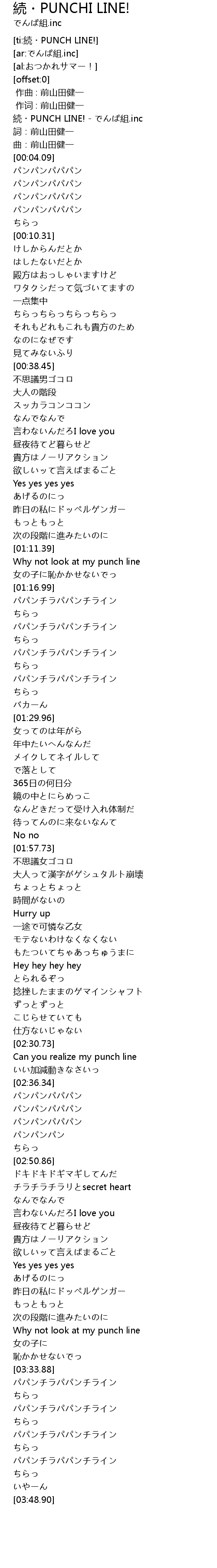 | [00:00.33] | 続・PUNCH LINE! - でんぱ組.inc |