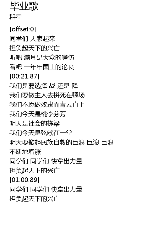 | [00:44.27] | 明天要掀起民族自救的巨浪 巨浪 巨浪 |