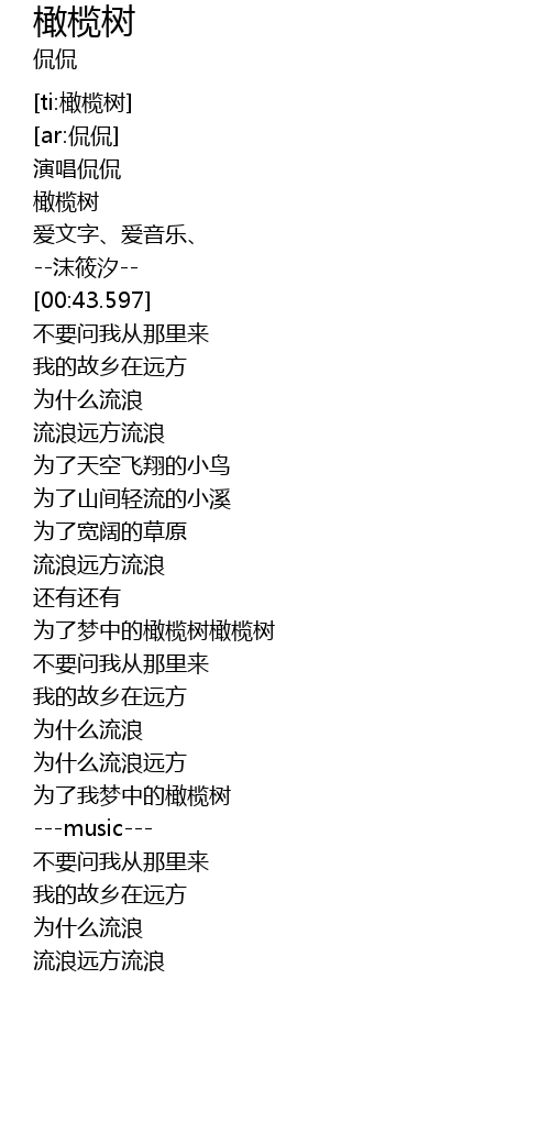 | [00:13.159] | 橄榄树 |