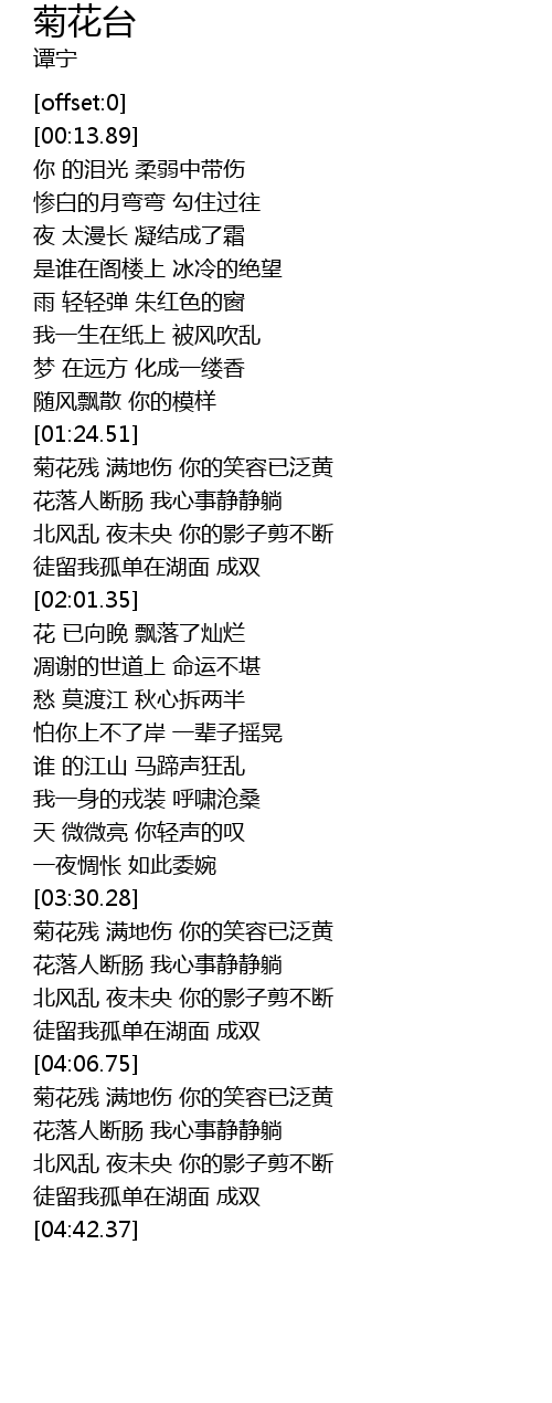 | [03:42.51] | 花落人断肠 我心事静静躺 |