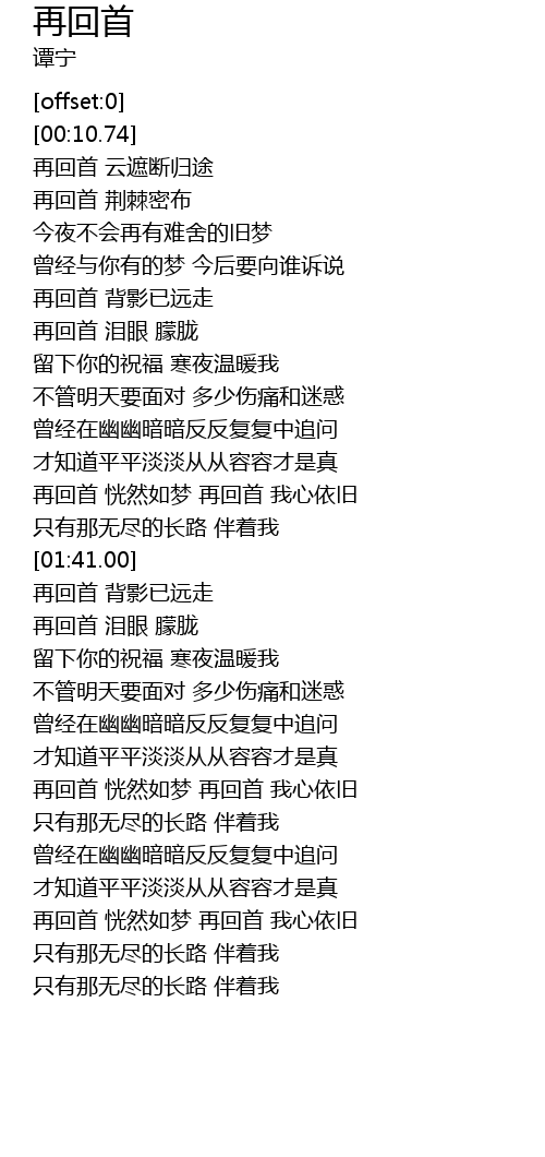 | [01:26.44] | 再回首 恍然如梦 再回首 我心依旧 |