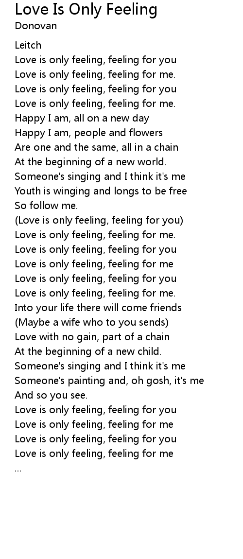 Love is only feeling, feeling for me. |