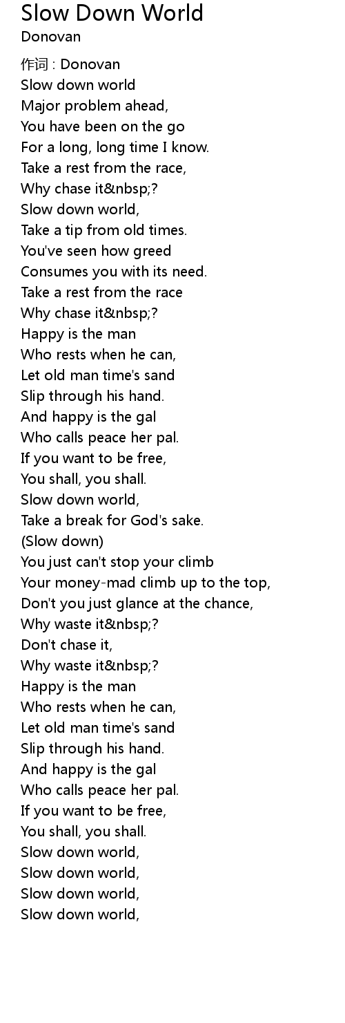 | Slow down world | |