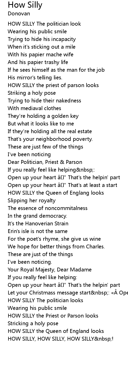 | HOW SILLY, HOW SILLY, HOW SILLY nbsp! |