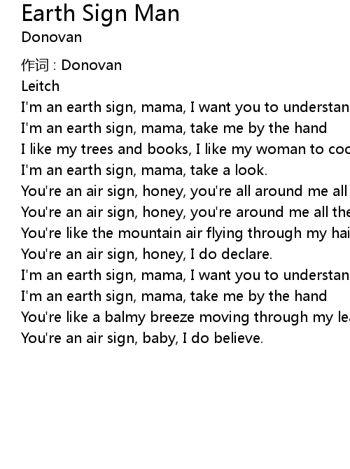 | I'm an earth sign, mama, take me by the hand | |