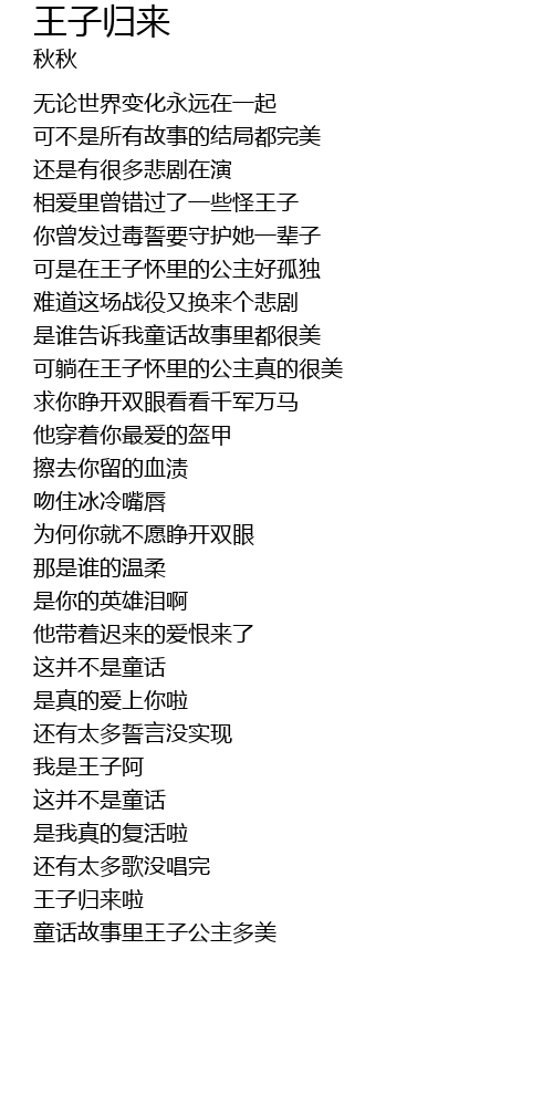 | [00:30.79] | 王子归来啦 |