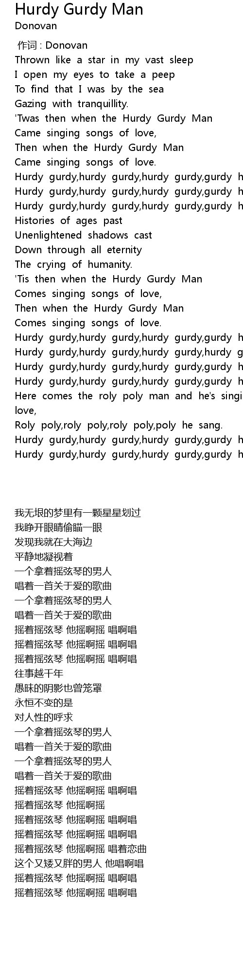 | [00:46.683] | Hurdy gurdy, hurdy gurdy, hurdy gurdy, gurdy he sang. |
