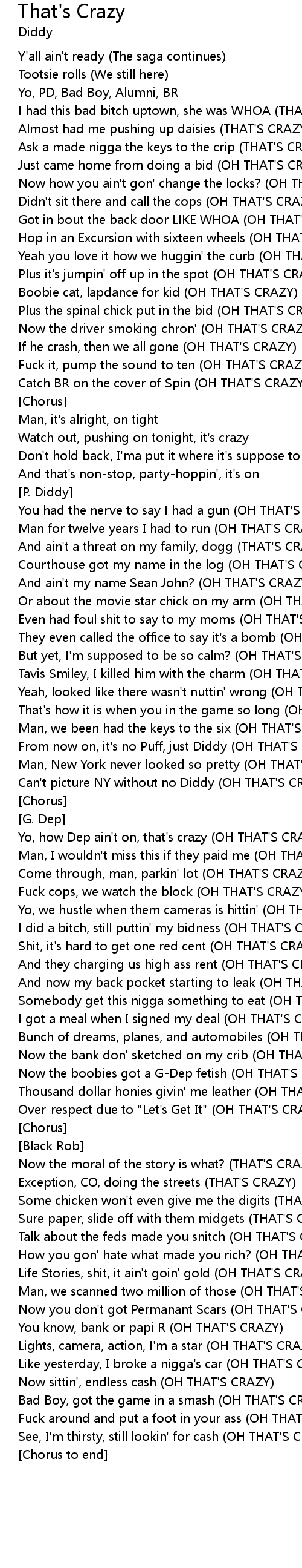 Can't picture NY without no Diddy (OH THAT'S CRAZY), oh no! |