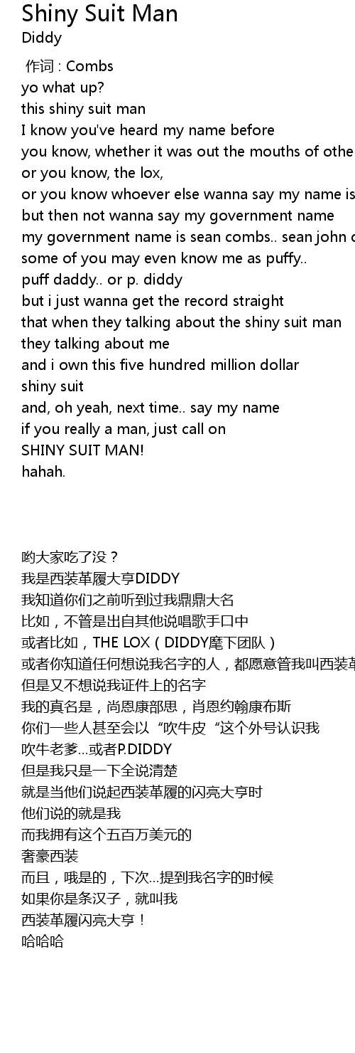 | [00:41.393] | that when they talking about the shiny suit man |