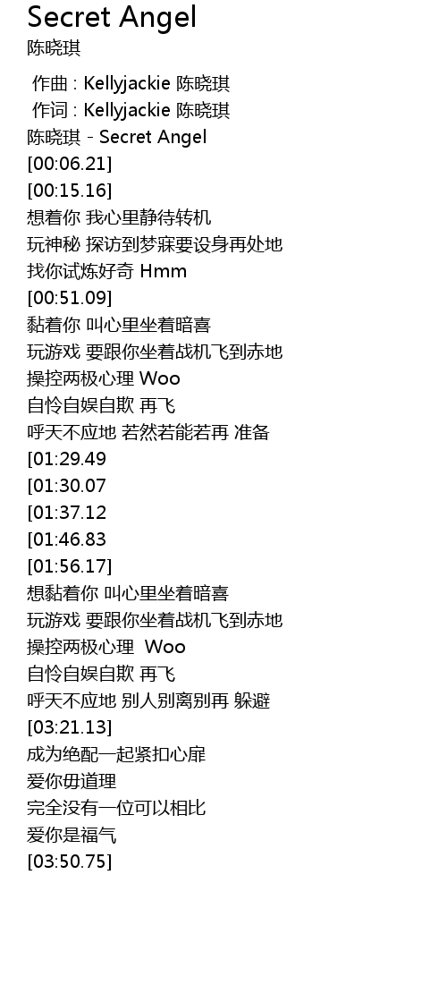 | [00:00.14] | chen xiao qi Secret Angel |