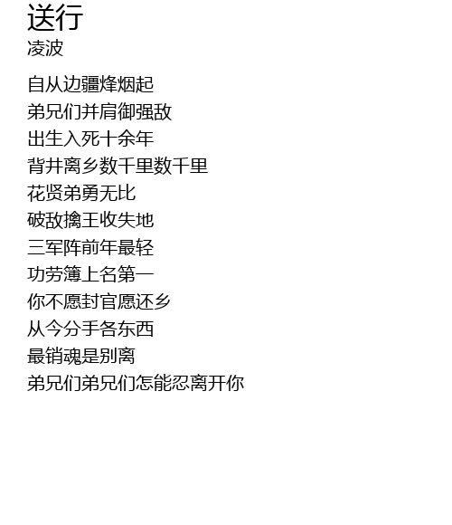 | [01:15.96] | 弟兄们弟兄们怎能忍离开你 |