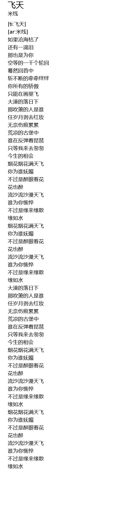 | [02:38.281] | 流沙流沙漫天飞 |