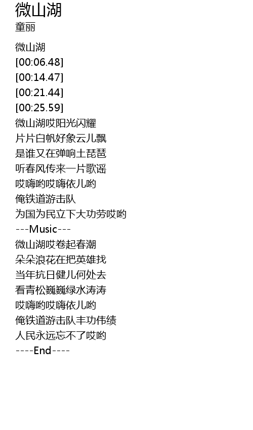 | [01:55.34] | 微山湖哎卷起春潮 |