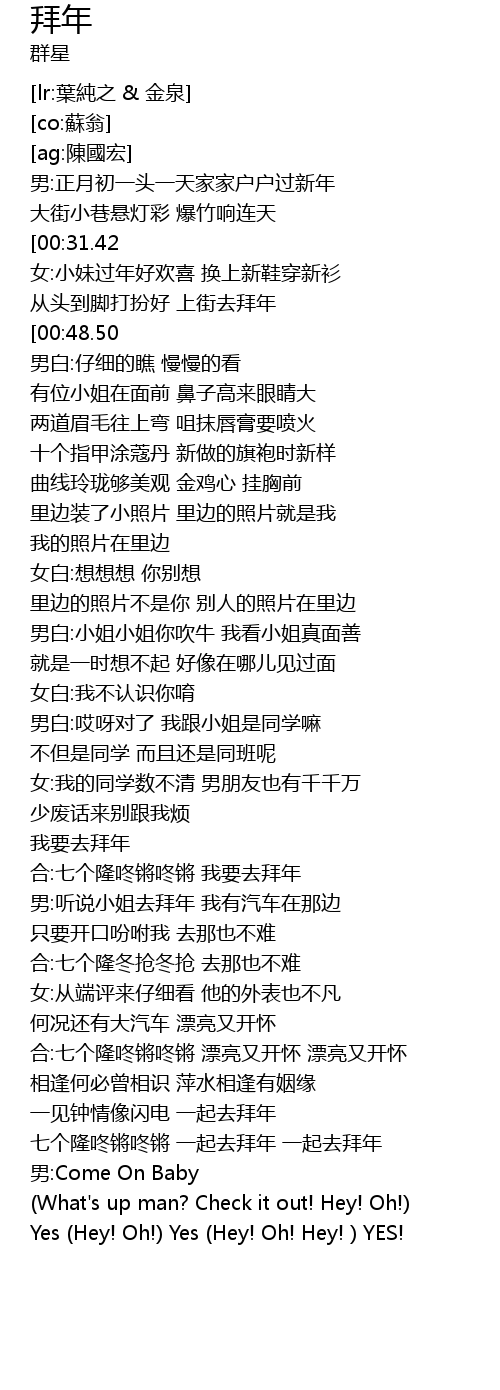 | [02:41.19] | 七个隆咚锵咚锵 一起去拜年 一起去拜年 |