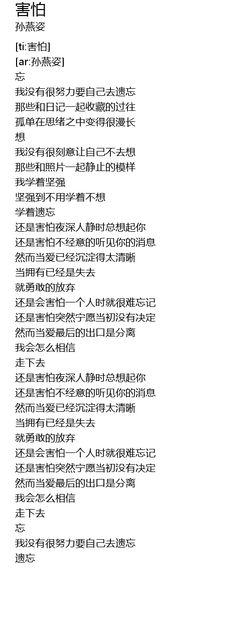 | [01:37.955] | 还是会害怕一个人时就很难忘记 |