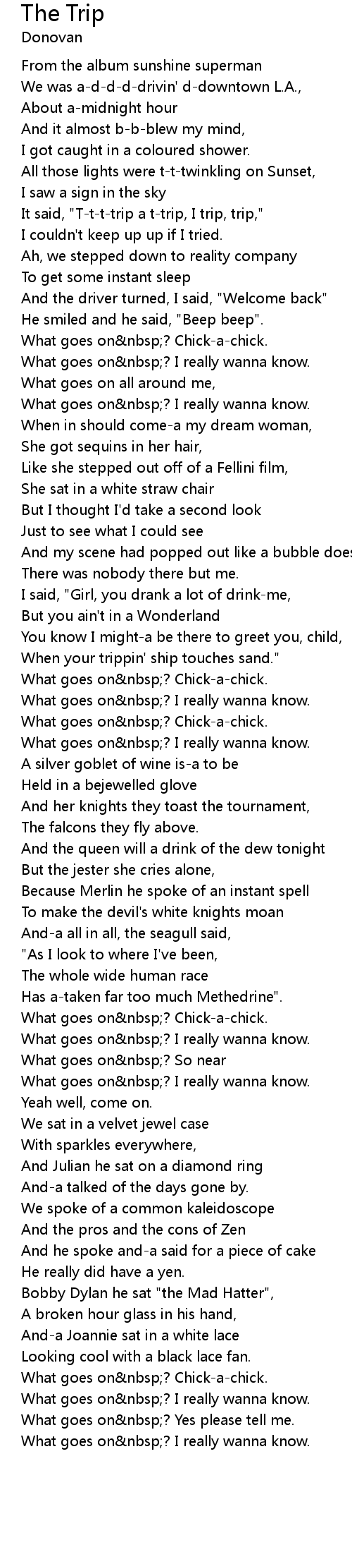It said, "T-t-t-trip a t-trip, I trip, trip," |