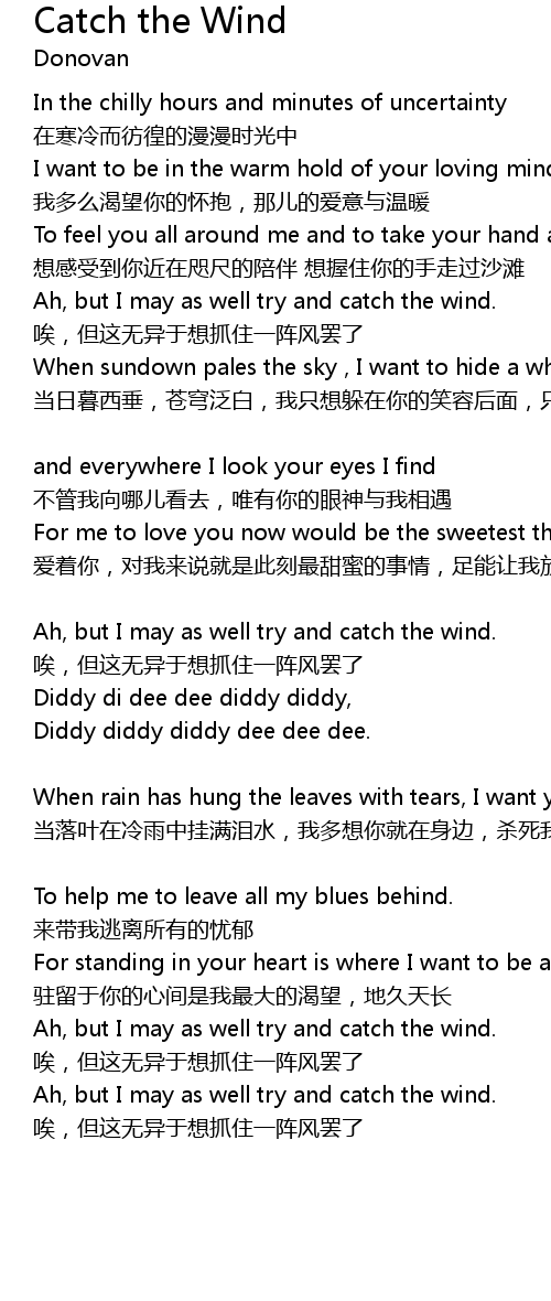 | Ah, but I may as well try and catch the wind. | |