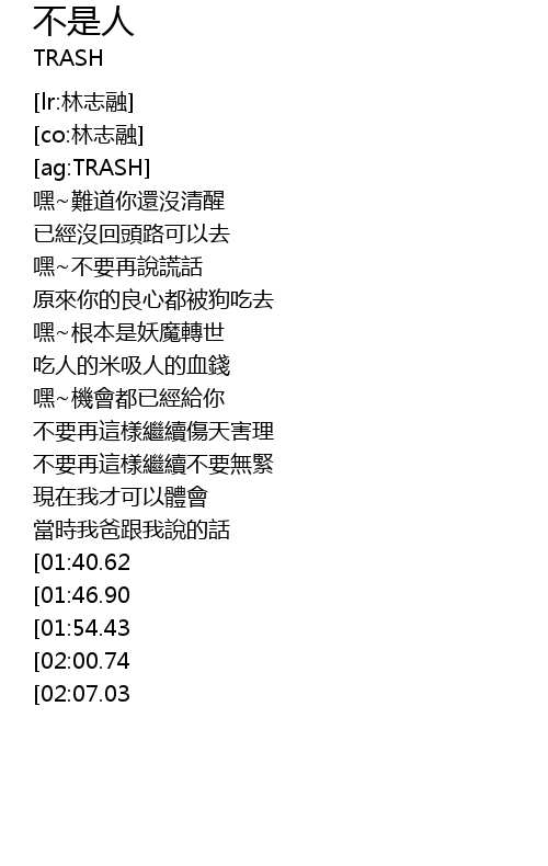| [03:32.56][02:07.03] | 他根本不是人 |