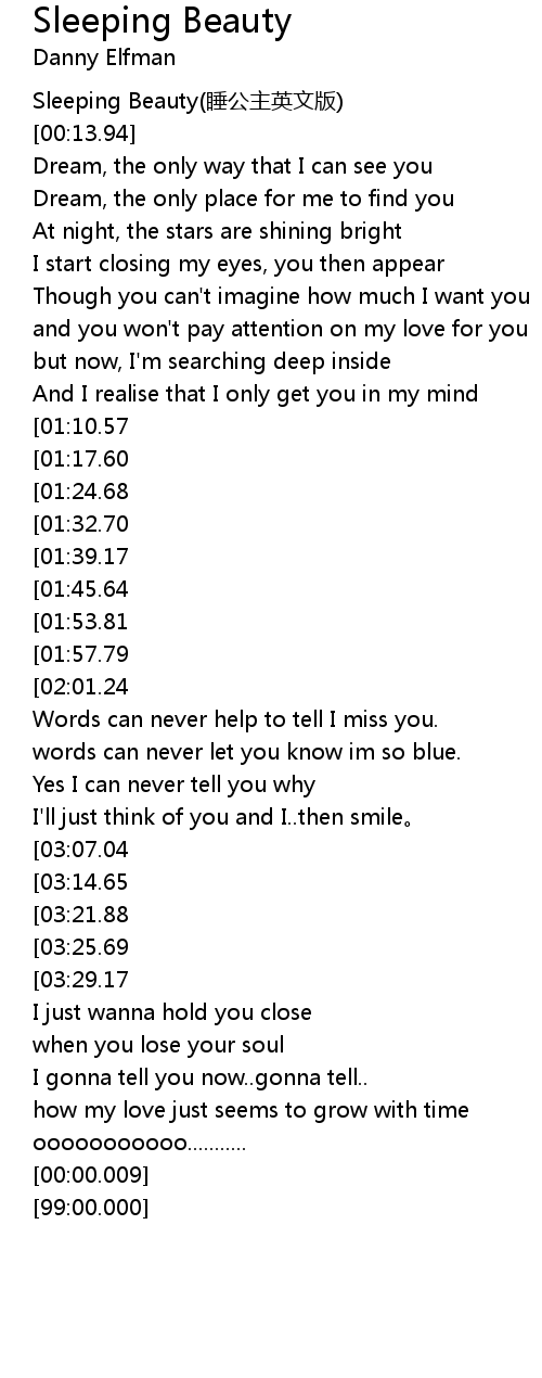 | [03:55.87][01:39.17] | I'm the Sleeping Beauty and had slept for hundred years |