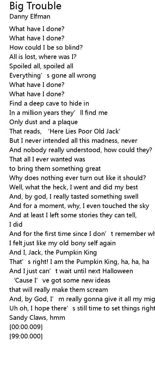| [02:00.49] | That' s right! I am the Pumpkin King, ha, ha, ha |