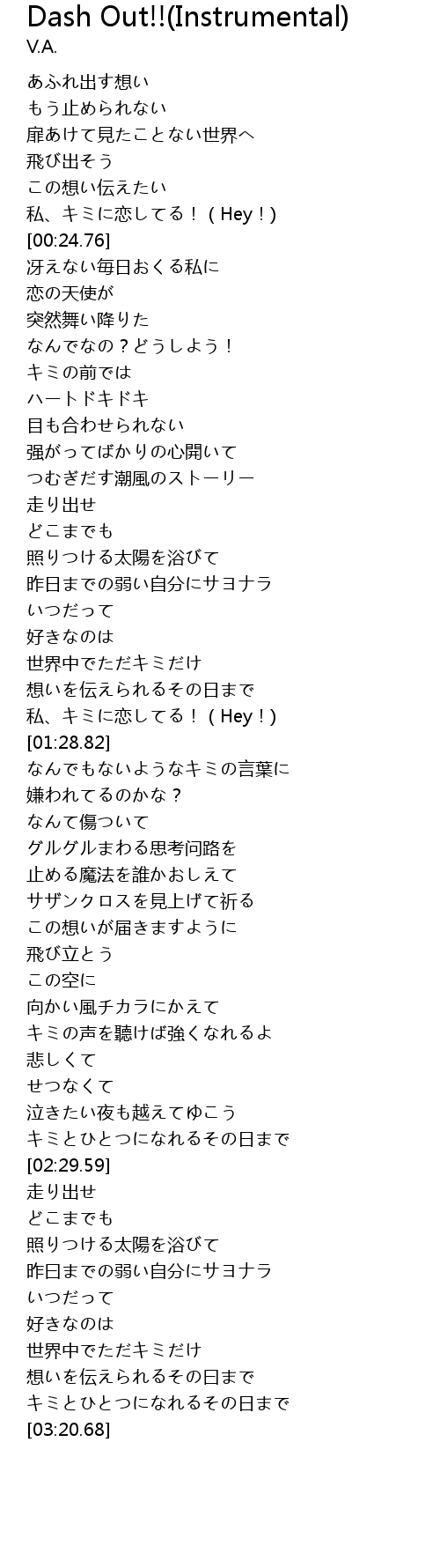 Dash Out!!(Instrumental) Lyrics