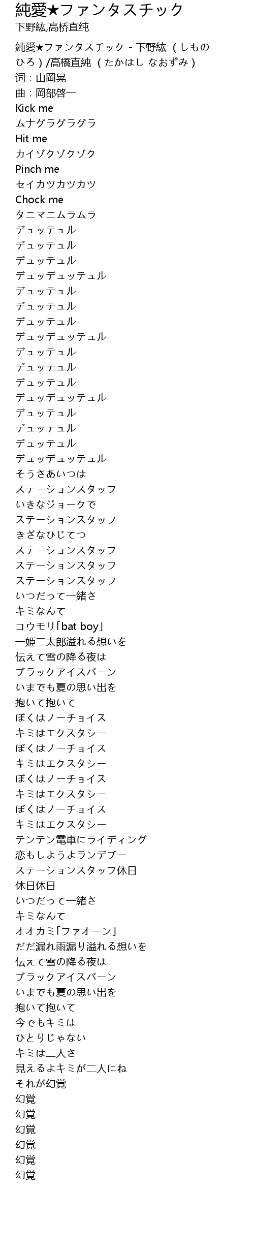 | [00:00.10] | 純愛★ファンタスチック - 下野紘 (しもの ひろ)/高橋直純 (たかはし なおずみ) |