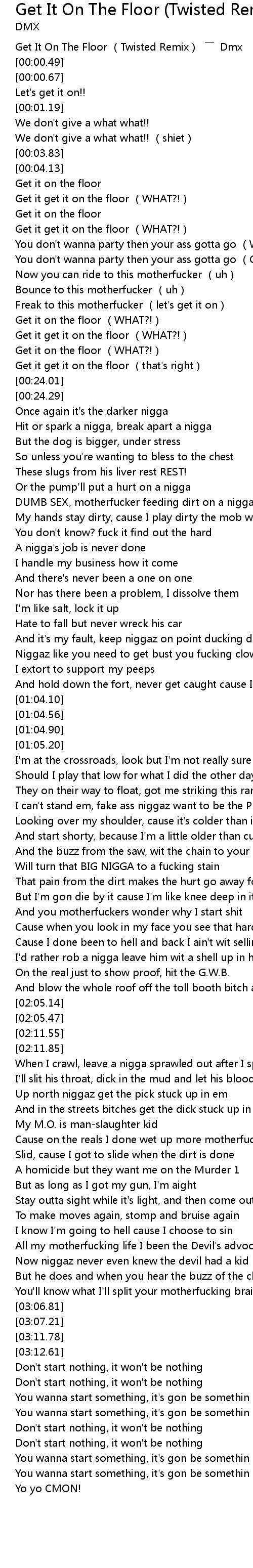 | [00:00.26] | Get It On The Floor Twisted Remix Dmx |