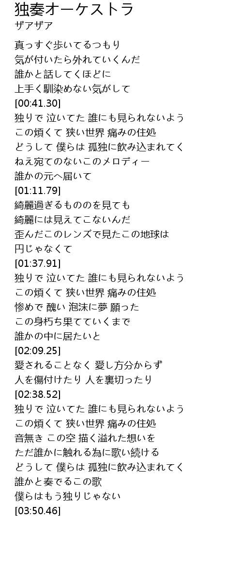 | [03:25.62] | どうして 僕らは 孤独に飲み込まれてく |