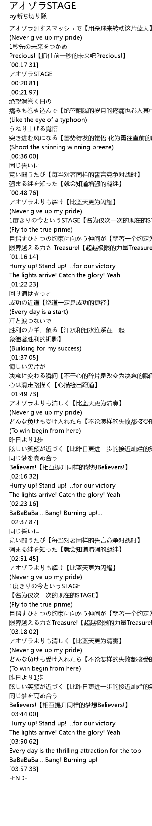 | [03:44.14] | Hurry up! Stand up! for our victory |