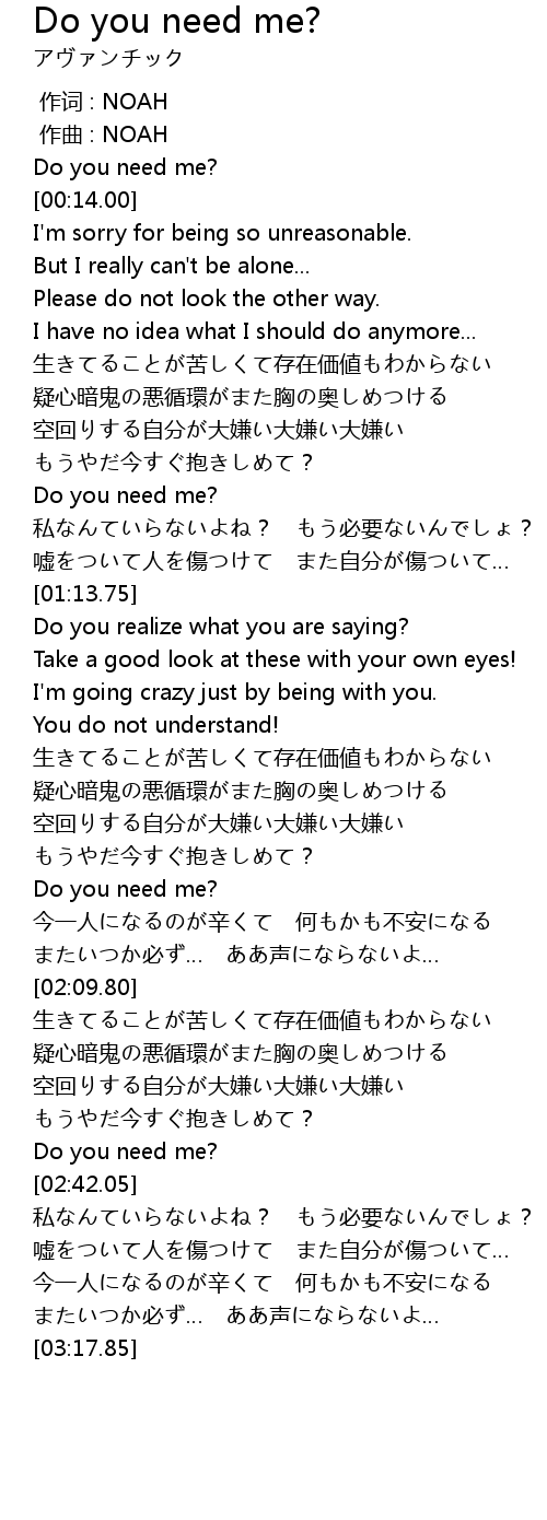 | [00:00.00] | Do you need me? |