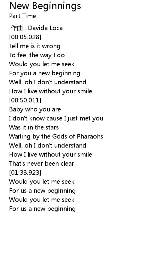| [00:33.188] | For you a new beginning |